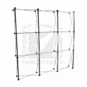 El Panel Araña PAI Recto 1 Cuerpo tiene como principal característica generar entornos con una óptima visualización de gráfica en base un sistema de fácil armado y desarmado. La estructura es plegable quedando muy compacto para transportar. Está fabricado con aluminio de alta calidad y se compone de 5 partes (Estructura, conectores metálicos, fijaciones superiores, láminas de PAI, Focos y carro de transporte).