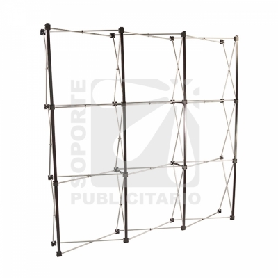 El Panel Araña PAI Recto 4 Cuerpos tiene como principal característica generar entornos con una óptima visualización de gráfica en base un sistema de fácil armado y desarmado. La estructura es plegable quedando muy compacto para transportar. Está fabricado con aluminio de alta calidad y se compone de 5 partes (Estructura, conectores metálicos, fijaciones superiores, láminas de PAI, Focos y carro de transporte).