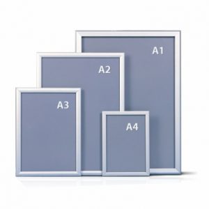 El porta grafica aluminio A3 se visualiza a mediana distancia (3 a 15mts aprox) y su uso es indoor. El tamaño de la gráfica permite desarrollar variados contenidos. El marco clip A3 se usa frecuentemente en centros comerciales, puntos de venta directo, salas de venta, locales comerciales, grandes superficies, Retail, puntos de información, boleterías, cines, entre otros.